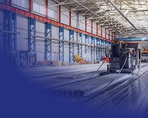 Производство многопустотных, предварительно напряжённых плит длиной до 13,1 м с возможностью распила под любым углом (0–180°) с точностью до 1°. Используем слипформер и полусухие смеси; армирование — проволока и канаты класса К-7 ø9/ø12 мм для увеличения несущей способности.